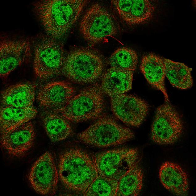 2016-10-31 Happy Halloween!!! This week we look at a very spooky protein, BAT3 which localizes to the nucleoplasm (looks like jack o'lanterns if you squint hard enough) and cytoplasm of the cell as seen in Figure 1 in A-431 cells. In addition to having a spooky name, this protein, also known as BAG6, was first identified as being involved in programmed cell death (apoptosis). Subsequent studies have revealed that BAT3 plays a role in many important cellular processes including gene regulation, protein synthesis, protein quality control, and protein degradation (Binici J & Koch J. 2014). Due to its role in these processes BAT3 has been associated with a myriad of diseases including progressive kidney diseases, type I diabetes, Parkinson?s disease, and cancers. BAT3 has also been shown to promote certain bacterial infections (A.W. Ensminger & R.R. Isberg 2010). Interestingly, many (transcript) variants encoding different flavors (isoforms) of this gene have been found. This information may provide some insight into the diverse functions of BAT3 as a chaperone protein. We hope you all have a fun and safe Halloween!! For more fun and spooky gene names check out this list by NOVUS. Devin Sullivan |