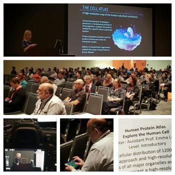 2016-12-05 Yesterday our new Cell Atlas was released, at the American Society of Cell Biology Meeting. The Cell Atlas is an open-access interactive database with unparalleled high-resolution images. It visualizes for the first time the location of over 12,000 proteins in cells – opening the way to spatial proteomics, an exciting new discipline predicted to lead to a fundamental increase in our understanding of human health and disease. Prof Mathias Uhlen, Director of the Human Protein Atlas explains: – After the genome projects that has characterized the number of human protein-coding genes, the next step is to elucidate the function of these proteins. Being able to show the location of the human proteins in time and space with a subcellular resolution is an essential first step towards novel insights into protein function. With more than 12,000 human proteins mapped to 30 different cellular structures, the Cell Atlas provides spatial information on protein expression patterns on a fine subcellular level. The analysis reveals a surprisingly complex cellular architecture with over half of all proteins localized to multiple compartments and a significant portion exhibits variation in expression at a single cell level. Dr. Emma Lundberg is Director of the Cell Atlas: –In particular, we expect the Cell Atlas to play a key role in the exciting new area of spatial proteomics. In order to expand our understanding of the workings of human cells from a holistic point of view, in particular in the context of health and disease, detailed knowledge about the underlying molecular system is needed. The whole team is present in San Francisco, and the Cell Atlas was released at a well-attended Tech Talk yesterday. The whole day, many interested people came to our booth in the exhibition hall, wanting to learn more about the Atlas, and already on Saturday we held a much appreciated workshop on how to use the Human Protein Atlas. In addition, several members have posters and/or oral presentations presenting different parts of the Cell Atlas, Explore the human cell! Frida Henningson Johnson |