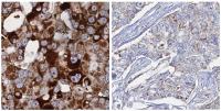 2017-10-13 As part of the release Pathology Atlas release, the Human Protein Atlas will each week present a brief and informative summary highlighting genes with prognostic association in different cancer forms. This week, we will focus on Lung cancer one of the deadliest cancers in the world today. Lung cancer patients have a poor outcome with a 5-year survival rate of 13.6% in men and 19.4% in women. Late diagnosis and lack of effective treatments are considered to contribute to poor prognosis. Smoking is the leading risk factor and is responsible for 70-90% of the lung cancer cases. Lung cancer can be divided into small cell lung cancer (SCLC) and non-small cell lung cancer (NSCLC)...Read more Ovarian Cancer Awareness Month
